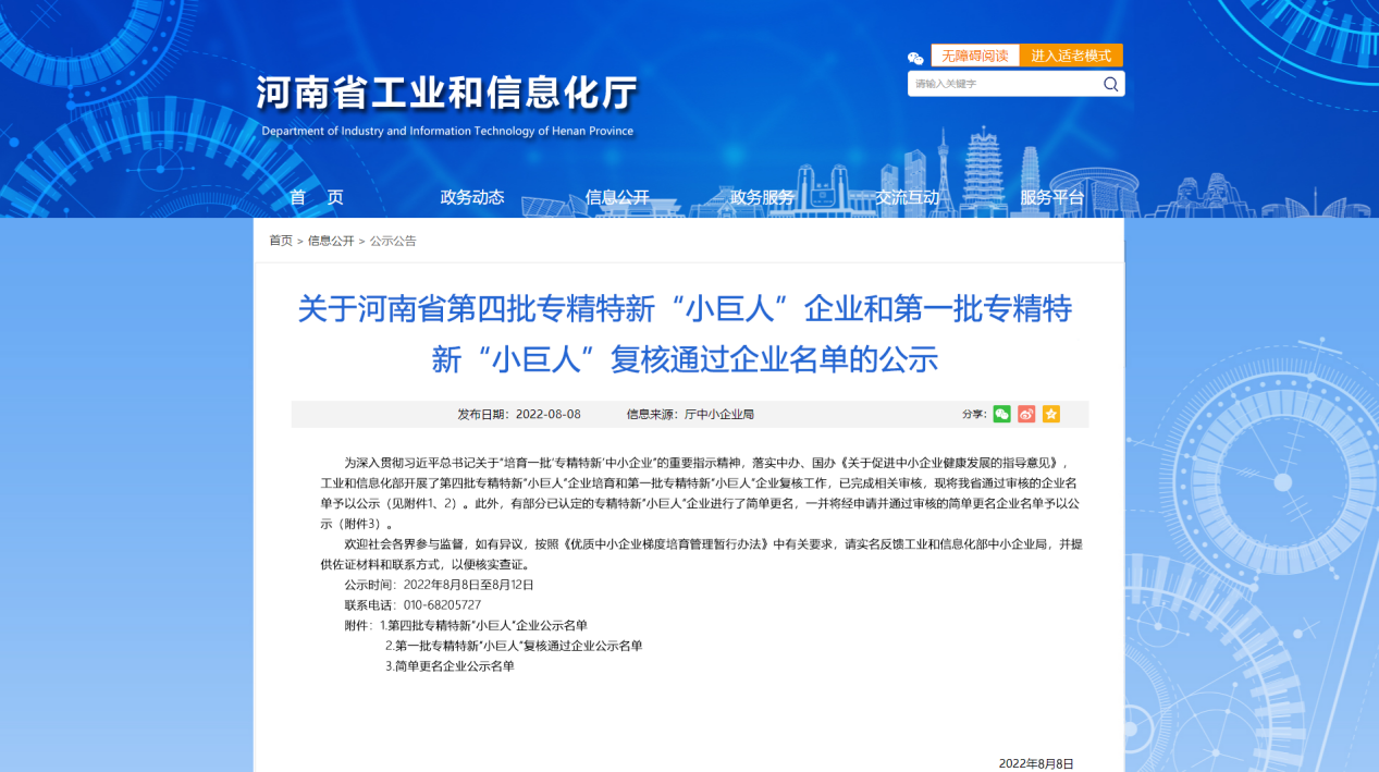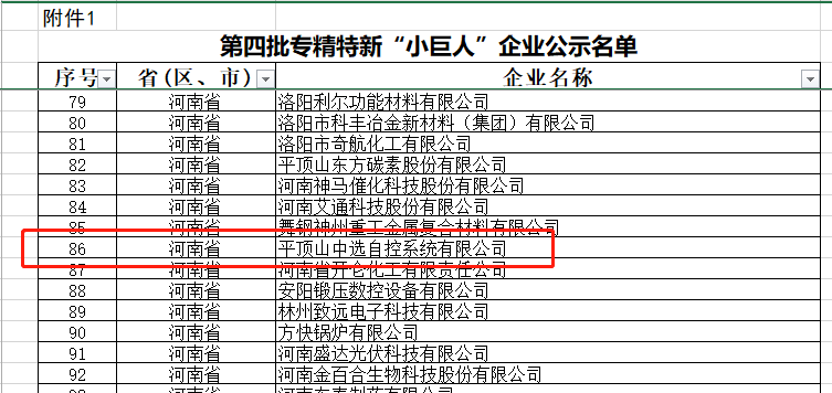 喜報!平頂山中選自控系統有限公司入選國家級專(zhuān)精特新“小巨人”企業(yè)名單