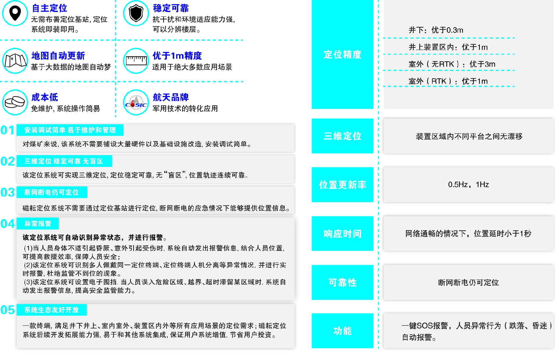 產(chǎn)品簡(jiǎn)介:選煤廠(chǎng)主廠(chǎng)房、篩分破碎車(chē)間等建筑內的大型設備立體空間結構復雜、遮擋嚴重,眾多電氣設備特別是變頻設備存在大量諧波及電磁干擾,現有定位技術(shù)不適用于選煤廠(chǎng)的復雜環(huán)境。針對選煤廠(chǎng)的復雜環(huán)境特點(diǎn),我公司首次研發(fā)了基于空間固有磁場(chǎng)特征的“磁耘”多源融合智能精確定位系統。該系統通過(guò)無(wú)源被動(dòng)的自主導航定位,為選煤廠(chǎng)復雜環(huán)境提供了一種穩定、高效且抗干擾的全新人員精準定位解決方案?!按旁拧倍嘣慈诤隙ㄎ幌到y是基于地磁技術(shù)的人員定位系統,其基本原理是利用不同位置的固有磁場(chǎng)差異來(lái)確定人員位置信息,同時(shí)還融合了慣導、藍牙、北斗等定位技術(shù),實(shí)現了室內外一體化定位。